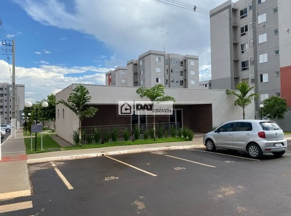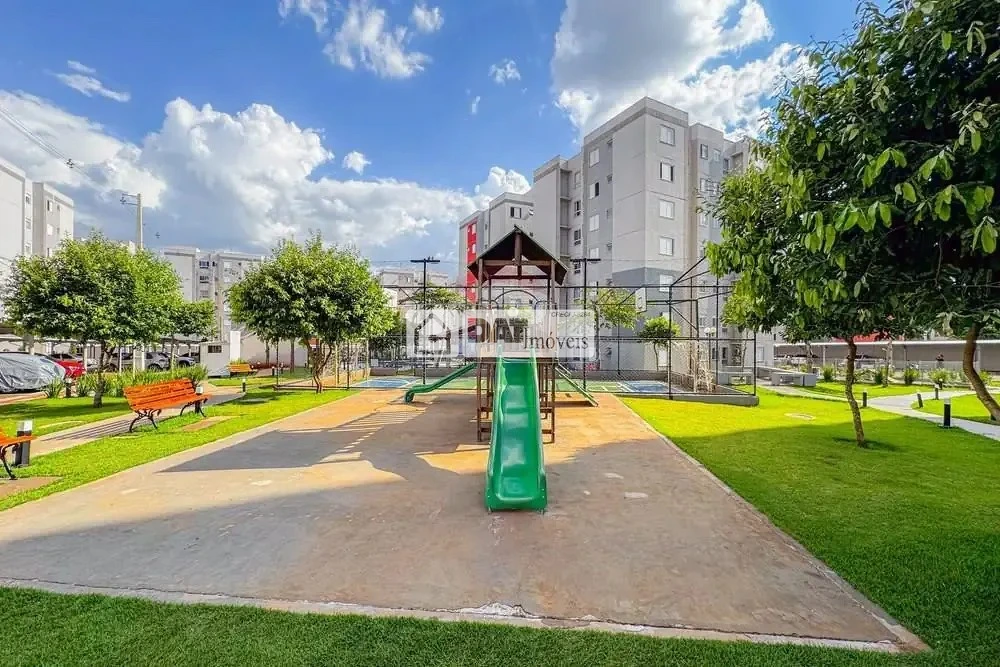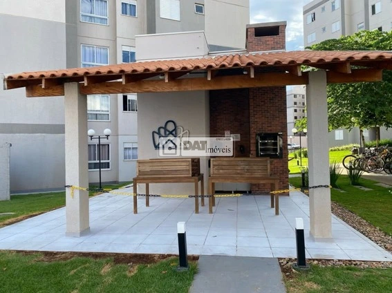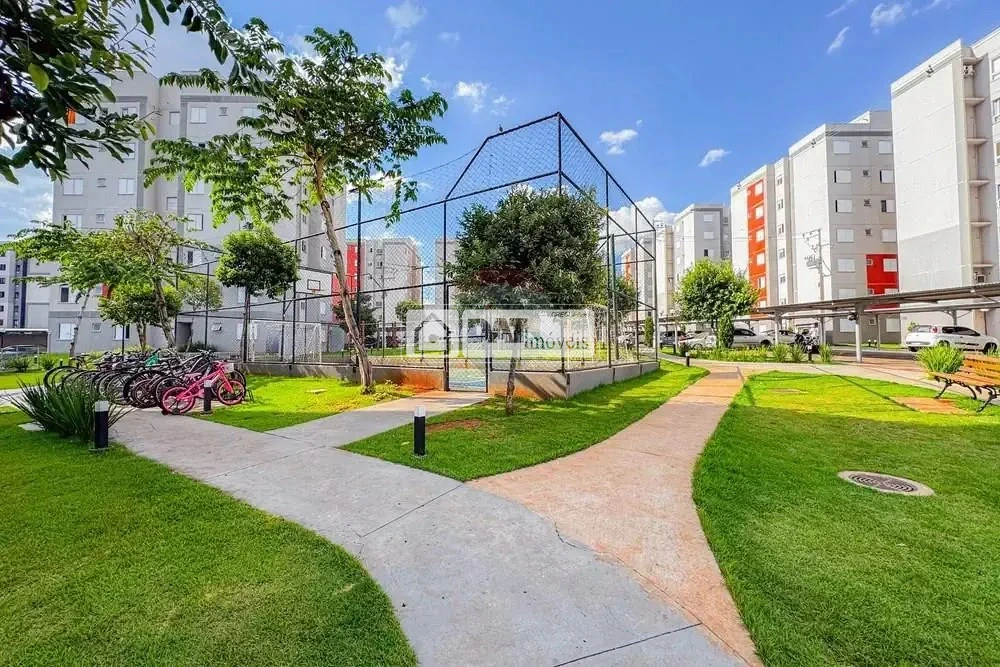 O condomínio oferece piscina, mercado, salão de festas e quadra, proporcionando estrutura funcional para o dia a dia dos moradores.